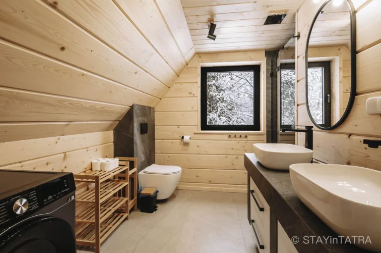 Łazienka: prysznic, 2 umywalki, toaleta, pralko-suszarka