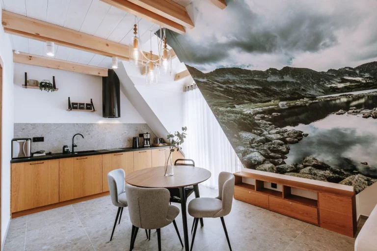 Apartamenty Księżycowe SPA - komfortowy kompleks apartamentów zlokalizowany w cichej, spokojnej i wyjątkowo widokowej dzielnicy Zakopanego - Oberconiówka. Z okien apartamentów rozpościera się przepiękny widok na Panoramę Tatr, przed budynkiem znajduje się bezpłatny parking samochodowe, teren wokół jest ogrodzony, a wjazd na posesję zamykany szlabanem na pilota.