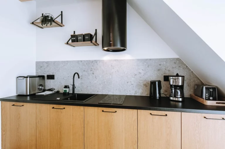 Aneks kuchenny - 2 palnikowa płyta grzewcza, ekspres do kawy przelewowy, czajnik elektryczny, zmywarka, kostkarka do lodu, lodówka, opiekacz, komplet naczyń, garnków, sztućców, zastawa szklana. W części jadalnianej duży okrągły stół + 4 krzesła.