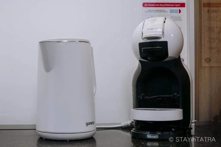 Aneks kuchenny: duża lodówka, zamrażarka, kuchenka mikrofalowa, piekarnik, czajnik elektryczny, zmywarka, 4 palnikowa płyta elektryczna, naczynia, sztućce, garnki, zastawa szklana