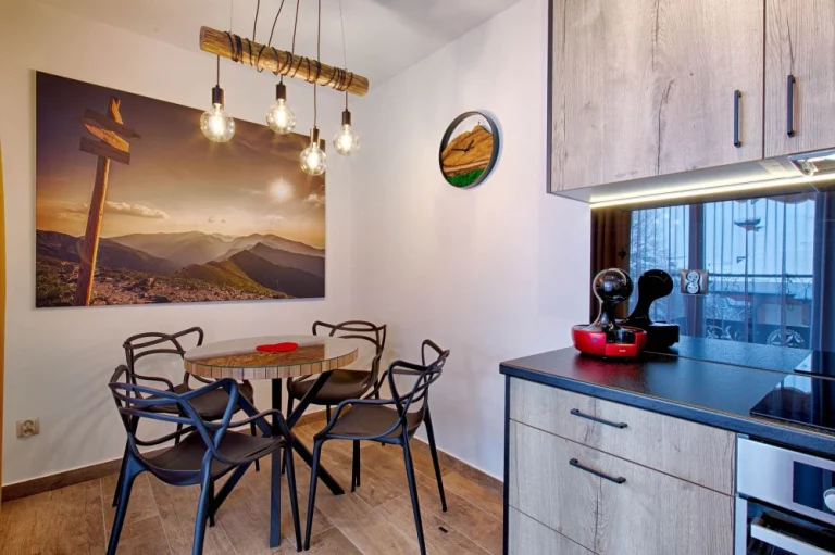Apartamenty GórSKI Przystanek - to kompleks w pełni wyposażonych apartamentów w wysokim standardzie, przepełnionych regionalnym klimatem. Budynek łączy w sobie elementy drewna i szkła, co sprawia, że zachwyca nawet najbardziej wymagających gości. Apartamenty Antałówka 12 zlokalizowane są w niezwykle malowniczej okolicy - kilkanaście metrów od szczytu wzgórza Antałówki (940 m n.p.m.), skąd rozpościera się przepiękny widok na panoramę Tatr i Zakopane. Cicha i spokojna okolica, obcowanie z naturą (często można napotkać tu spacerujące sarny), malownicze widoki, bliskość szlaków turystycznych, a jednocześnie niedaleka odległość od centrum (1,6 km do górnej części Krupówek, 1,7 km do Wielkiej Krokwi) to atuty, które sprawiają, że GórSKI Przystanek to miejsce zapewniające naszym gościom wyjątkowy komfort wypoczynku. Ponadto, nieopodal obiektu przebiegają: szlak architektury drewnianej i szlak widokowy na Bachledzkim Wierchu.