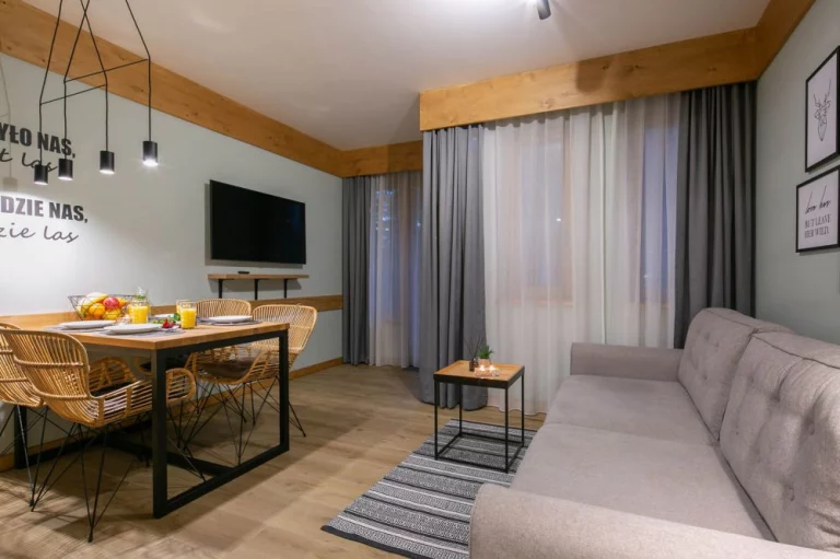 Przytulny apartament dla 4 osób w ścisłym centrum Zakopanego, zlokalizowany pomiędzy Krupówkami (5 minut spacerkiem), a kompleksem skoczni narciarskich Wielka Krokiew. Mieści się w budynku nowoczesnego apartamentowca z windą.