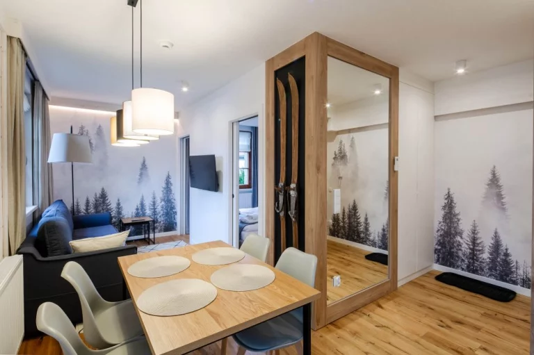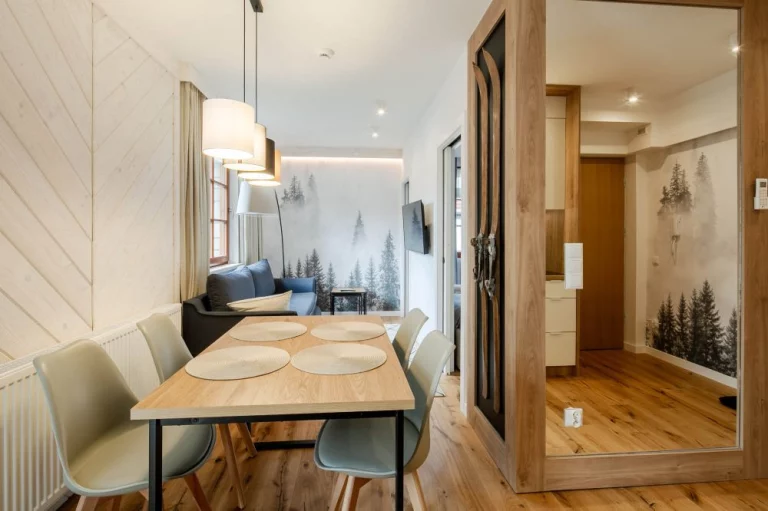 Górskie Szczyty Apart & SPA to wygodne i gustownie urządzone apartamenty (dla 2-4 osób) z w pełni wyposażonymi aneksami kuchennymi. Apartamenty zlokalizowane na piętrach posiadają piękny widok na Giewont i Wielką Krokiew, apartamenty parterowe mają gustowne tarasy z bezpośrednim wyjściem do ogrodu.