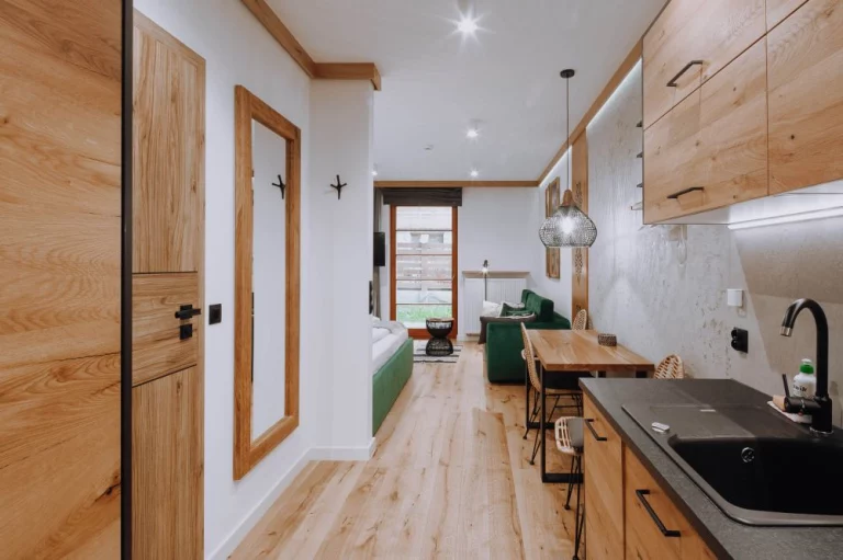 Górskie Szczyty Apart & SPA to wygodne i gustownie urządzone apartamenty (dla 2-4 osób) z w pełni wyposażonymi aneksami kuchennymi. Apartamenty zlokalizowane na piętrach posiadają piękny widok na Giewont i Wielką Krokiew, apartamenty parterowe mają gustowne tarasy z bezpośrednim wyjściem do ogrodu.