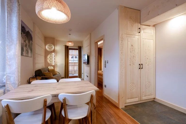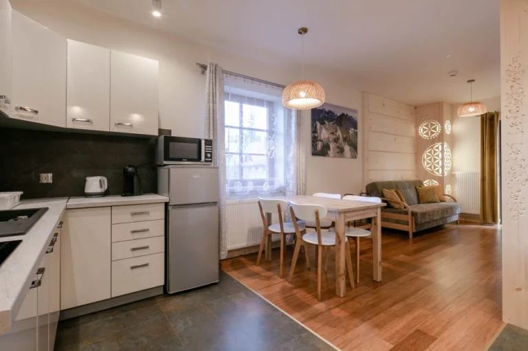 Górskie Szczyty Apart & SPA to wygodne i gustownie urządzone apartamenty (dla 2-4 osób) z w pełni wyposażonymi aneksami kuchennymi. Apartamenty zlokalizowane na piętrach posiadają piękny widok na Giewont i Wielką Krokiew, apartamenty parterowe mają gustowne tarasy z bezpośrednim wyjściem do ogrodu.