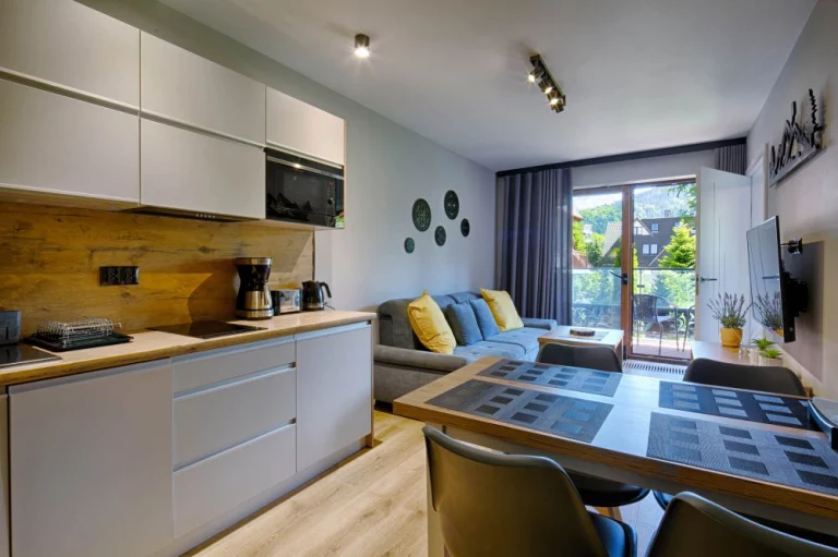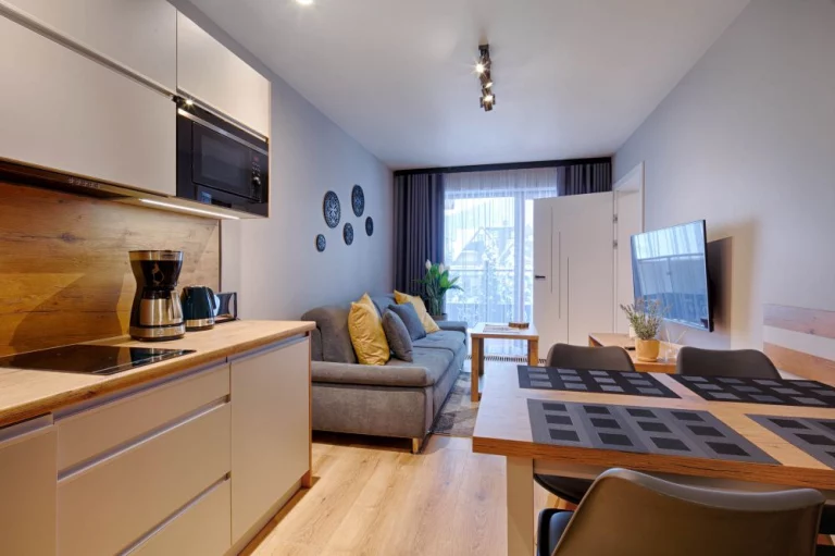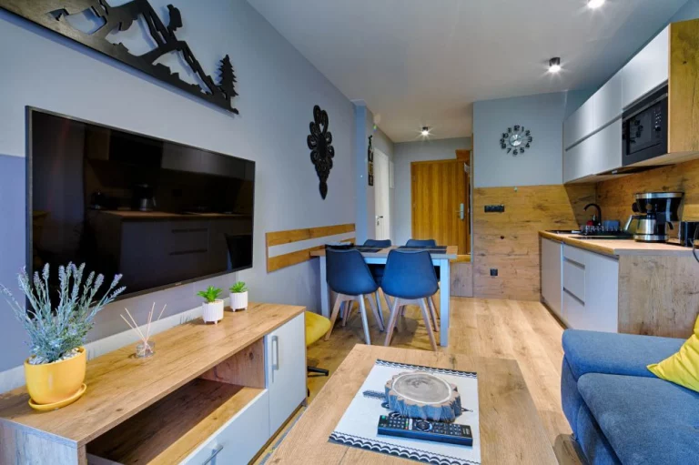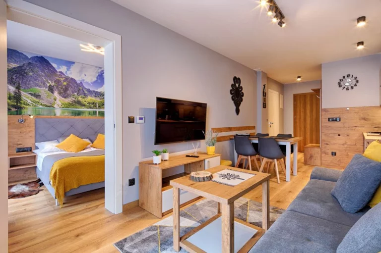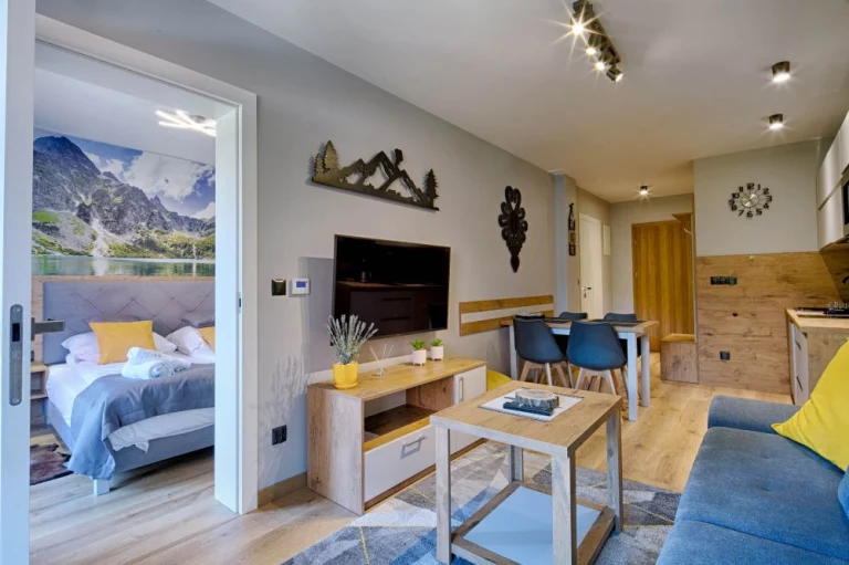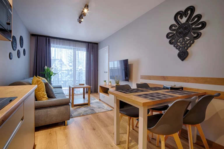Apartamenty GórSKI Przystanek - to kompleks w pełni wyposażonych apartamentów w wysokim standardzie, przepełnionych regionalnym klimatem. Budynek łączy w sobie elementy drewna i szkła, co sprawia, że zachwyca nawet najbardziej wymagających gości. Apartamenty Antałówka 12 zlokalizowane są w niezwykle malowniczej okolicy - kilkanaście metrów od szczytu wzgórza Antałówki (940 m n.p.m.), skąd rozpościera się przepiękny widok na panoramę Tatr i Zakopane. Cicha i spokojna okolica, obcowanie z naturą (często można napotkać tu spacerujące sarny), malownicze widoki, bliskość szlaków turystycznych, a jednocześnie niedaleka odległość od centrum (1,6 km do górnej części Krupówek, 1,7 km do Wielkiej Krokwi) to atuty, które sprawiają, że GórSKI Przystanek to miejsce zapewniające naszym gościom wyjątkowy komfort wypoczynku. Ponadto, nieopodal obiektu przebiegają: szlak architektury drewnianej i szlak widokowy na Bachledzkim Wierchu.