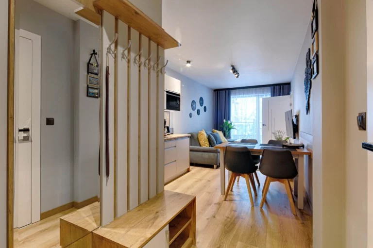 Przedpokój: lustro, wieszak, półka na buty, łyżka do butów