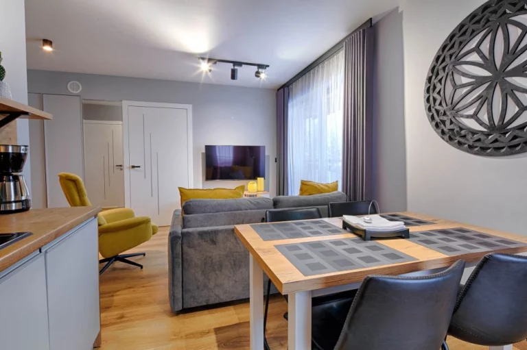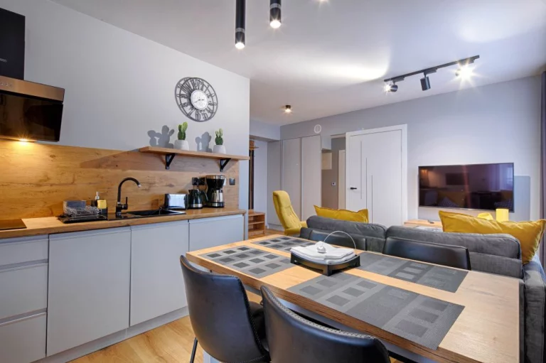 Apartamenty GórSKI Przystanek - to kompleks w pełni wyposażonych apartamentów w wysokim standardzie, przepełnionych regionalnym klimatem. Budynek łączy w sobie elementy drewna i szkła, co sprawia, że zachwyca nawet najbardziej wymagających gości. Apartamenty GórSKI Przystanek zlokalizowane są w niezwykle malowniczej okolicy - kilkanaście metrów od szczytu wzgórza Antałówki (940 m n.p.m.), skąd rozpościera się przepiękny widok na panoramę Tatr i Zakopane. Cicha i spokojna okolica, obcowanie z naturą (często można napotkać tu spacerujące sarny), malownicze widoki, bliskość szlaków turystycznych, a jednocześnie niedaleka odległość od centrum (1,6 km do górnej części Krupówek, 1,7 km do Wielkiej Krokwi) to atuty, które sprawiają, że GórSKI Przystanek to miejsce zapewniające naszym gościom wyjątkowy komfort wypoczynku. Ponadto, nieopodal obiektu przebiegają: szlak architektury drewnianej i szlak widokowy na Bachledzkim Wierchu.
