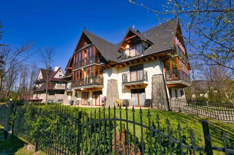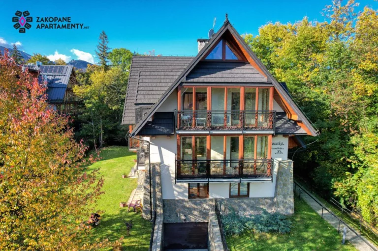 Jasny i słoneczny apartament dla 6 osób z dwiema sypialniami, salonem z aneksem kuchennym i łazienką. Zlokalizowany na parterze budynku 2 piętrowego apartamentowca. Z apartamentu znajduje się bezpośrednie wyjście do ogrodu. Na wyposażeniu m.in. zmywarka i pralka, kuchenka mikrofalowa, komplet naczyń i sztućców. Na tarasie dla znajdują się 2 fotele wypoczynkowe. Do apartamentu przypisane jest 1 miejsce parkingowe w garażu podziemnym Gratis. Brama wjazdowa do garażu podziemnego ma wysokość 2 m i szerokość 3 m. Teren wokół apartamentowca jest ogrodzony, a okolica bardzo bezpieczna i cicha. Budynek zlokalizowany jest praktycznie w samym centrum Zakopanego. Od Krupówek dzieli go 5 minutowy spacer. W odległości 300m znajduje się wejście do Doliny Białego - miejsca z którego rozpoczyna się szereg szlaków tatrzańskich. Odległości do innych popularnych miejsc turystycznych: Park Miejski - 500m, Skocznia narciarska i trasy biegowe - 1500m, kino Sokół - 700m, basen, SPA, siłownia - 250m, sklep spożywczy - 100m, Restauracje i Karczmy Regionalne - 200m.