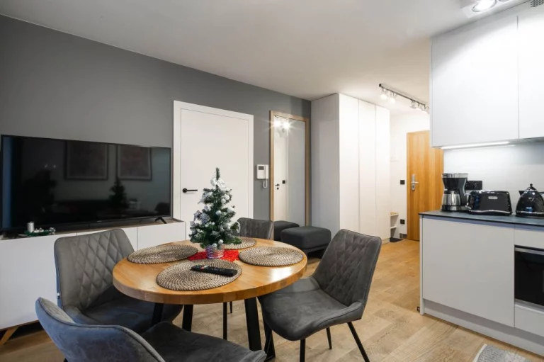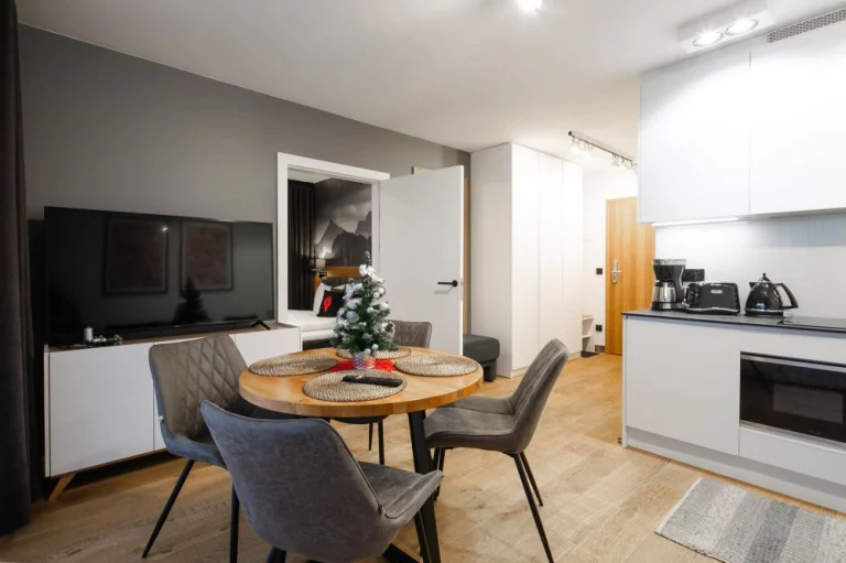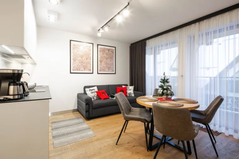 Apartamenty GórSKI Przystanek - to kompleks w pełni wyposażonych apartamentów w wysokim standardzie, przepełnionych regionalnym klimatem. Budynek łączy w sobie elementy drewna i szkła, co sprawia, że zachwyca nawet najbardziej wymagających gości. Apartamenty GórSKI Przystanek zlokalizowane są w niezwykle malowniczej okolicy - kilkanaście metrów od szczytu wzgórza Antałówki (940 m n.p.m.), skąd rozpościera się przepiękny widok na panoramę Tatr i Zakopane. Cicha i spokojna okolica, obcowanie z naturą (często można napotkać tu spacerujące sarny), malownicze widoki, bliskość szlaków turystycznych, a jednocześnie niedaleka odległość od centrum (1,6 km do górnej części Krupówek, 1,7 km do Wielkiej Krokwi) to atuty, które sprawiają, że GórSKI Przystanek to miejsce zapewniające naszym gościom wyjątkowy komfort wypoczynku. Ponadto, nieopodal obiektu przebiegają: szlak architektury drewnianej i szlak widokowy na Bachledzkim Wierchu.