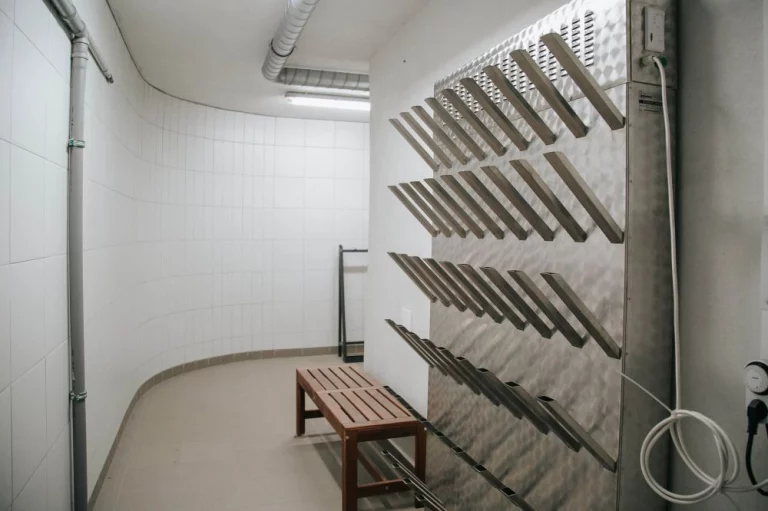 Przedpokój: szafa trzydrzwiowa, wieszak, półka na buty, pufa, duże ścienne lustro odkurzacz, deska i żelazko do prasowania