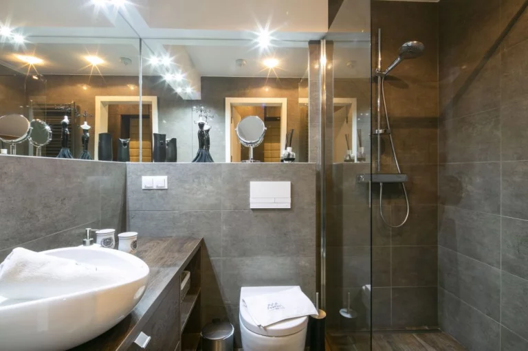 Łazienka: prysznic, wc, umywalka, ręcznikowiec, suszarka do włosów