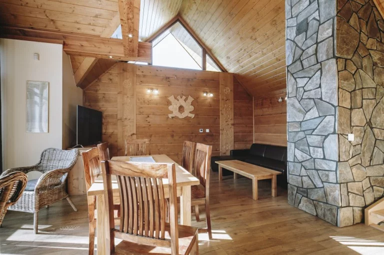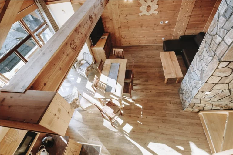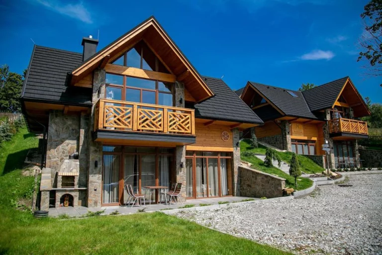 Domek składa się z 2 kondygnacji + antresoli z miejscem do spania. 2 samodzielne sypialnie (każda z własną łazienką), duży salon z aneksem kuchennym, łazienką i w/w antresolą. Z salonu znajduje się bezpośrednie wyjście na balkon, a z każdej z sypialnia na taras widokowy. W budynku jest ogrzewanie podłogowe i inteligentny system ogrzewania. Dla gości domku zarezerwowane jest 1 miejsce parkingowe Gratis. Budynek jest monitorowany i posiada instalację alarmową + bezpłatne WiFi. Dla więcej niż 1 samochodu jest parking w pobliżu w cenie 20 zł za dobę.