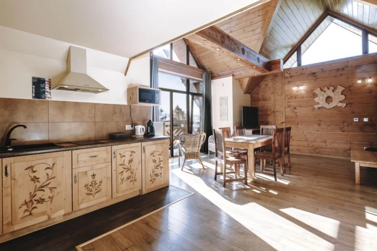 Znajduje się w kompleksie góralskich, drewnianych domków w jednej z najstarszych dzielnic Zakopanego - Olczy. Około 10 minut jazdy samochodem od ścisłego centrum miasta. Piękny widok na panoramę Tatr i Gubałówkę gwarantowane!