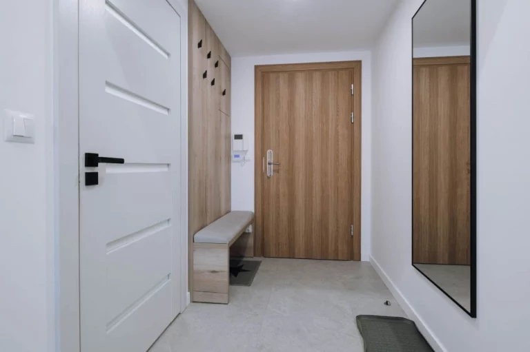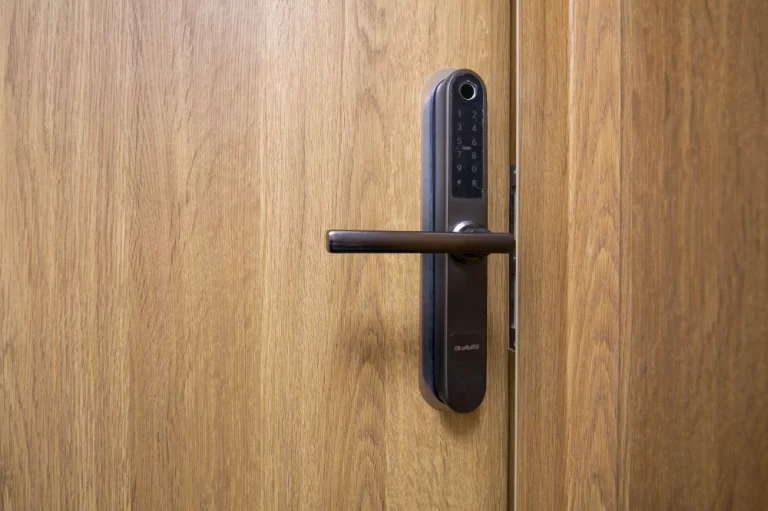 W drzwiach wejściowych znajduje się zamek elektroniczny na kod.